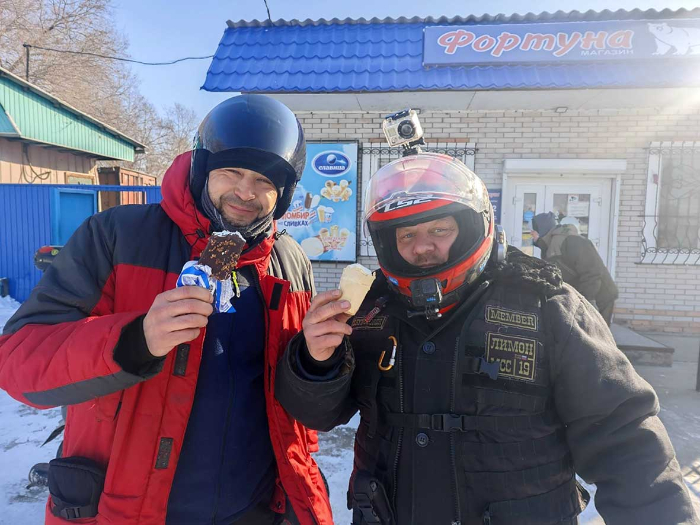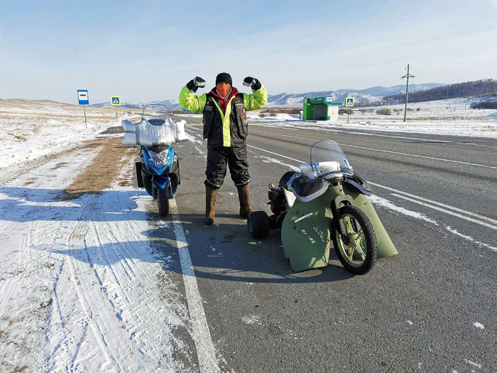 Вывод такой - если все же найдутся такие же, как мы «отмороженные», желающие, что называется, «повторить фокус», я рекомендовал бы им ехать на более мощной технике. Во-первых, чтобы в перевалы подниматься легче, а во-вторых, чтобы идущим попутно фурам меньше помех создавать. А еще очень важно позаботиться, чтобы у техники был хороший генератор, который позволяет установить подогрев ручек. Балаклавы и шлемы с пинлоками это, конечно, обязательные элементы экипировки, но как ты не утепляйся, а руки и ноги все равно дико мерзнут. Дело в том, что генераторы на мопедах слабые, а подогрев ручек, к сожалению, на них не установить. Как бы вы не утепляли руки, они все равно дико мерзнут на морозе за -30, если руль дополнительно не прогревается. К счастью, никто из нас ничего себе не отморозил, но лично я больше такого опыта не повторю и на мопеде в мороз так далеко не поеду.