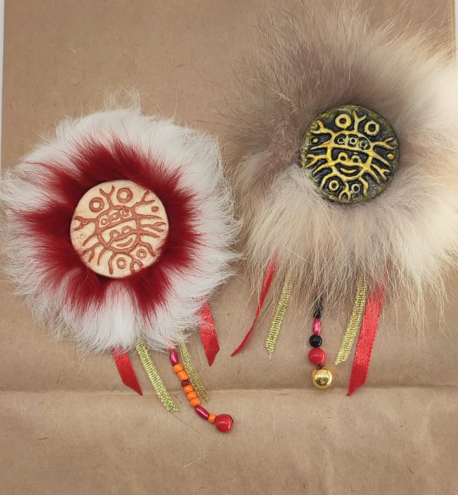 Магнит в мехе. Работа Колычевой Юлии. В центре - петроглифы Окуневской культуры, сделаные из гипса, роспись акриловыми красками